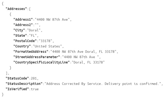 The address validation module is used for validating any number of domestic or international physical addresses. There are currently two resources available for use: one for validating a single address, and one for validating a batch of addresses. Each resource accepts a JSON object as a parameter and must be accessed using HTTP POST.